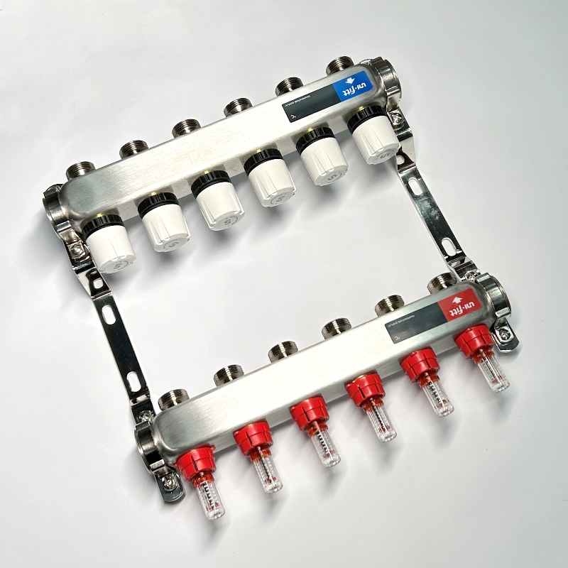 Колл.группа 1" х 6 вых 3/4" с расходомерами и термостатическими вентилями без конц, нерж. сталь