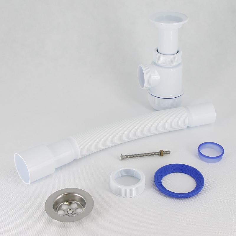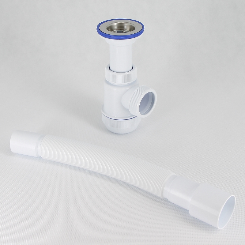 Сифон Мини Элит 1 1/2 х 40 мм с литым выпуском, нерж. чашка D70 мм, гофротруба L800 мм 40 х 40/50 мм