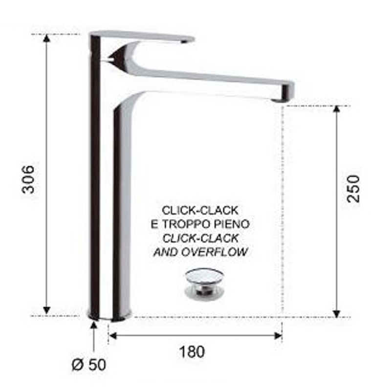 - Высота излива, мм