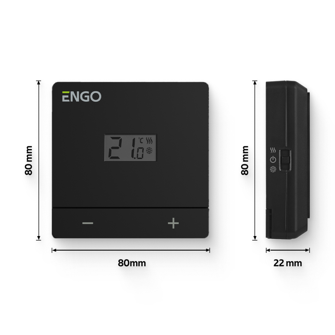 Термостат ENGO Easy комнатный накладной, с дисплеем, 2хAAA, черный