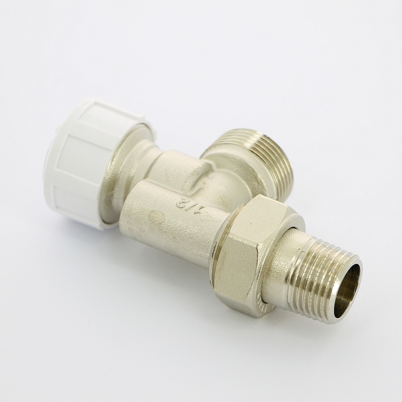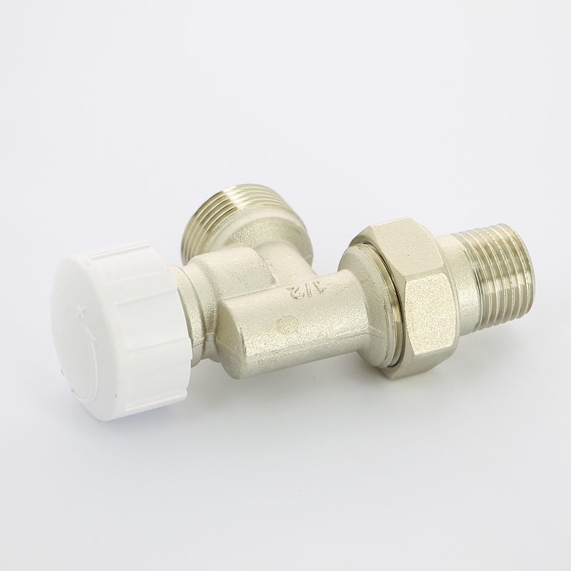 Вентиль термостатический угловой-осевой НН 1/2" х 3/4" ЕК с разъёмным соединением, никелированный